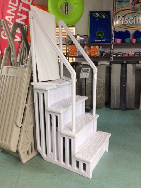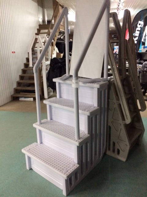Width 24 “, 4 full steps – 8.5″ deep, 2 sets of mounting flanges, adjustable to 60” deck height, double extended ramps, optional 12 volt light.